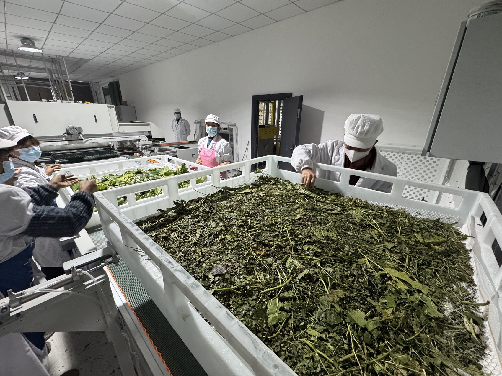 智能茶桑融合發(fā)展示范基地里,工作人員正在除沙