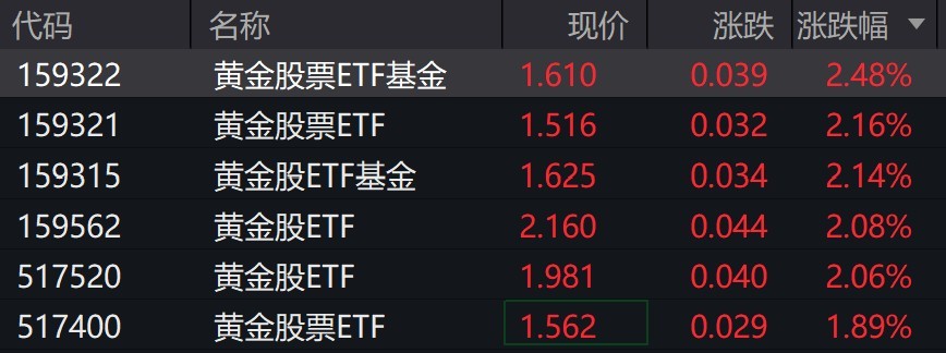 黃金概念股走強,山東黃金、中國黃金國際漲超3%,中金黃金、招金礦業、紫金礦業漲超2%。